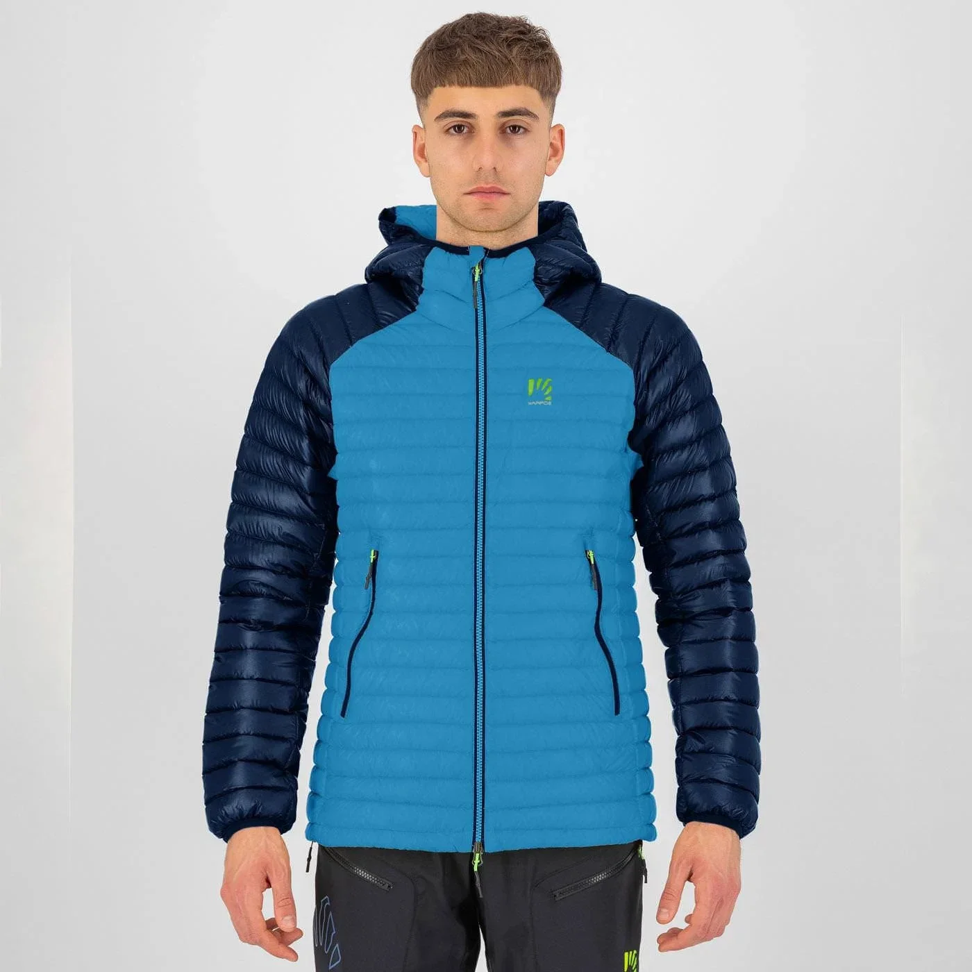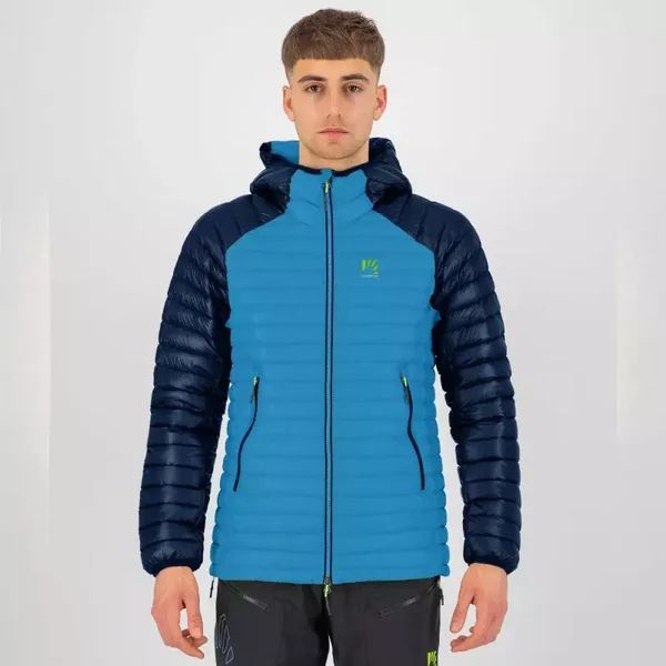 Veste chaude, légère et durable. Grâce au traitement DWR appliqué directement sur le duvet, elle reste isolante même dans des conditions d'humidité maximale.